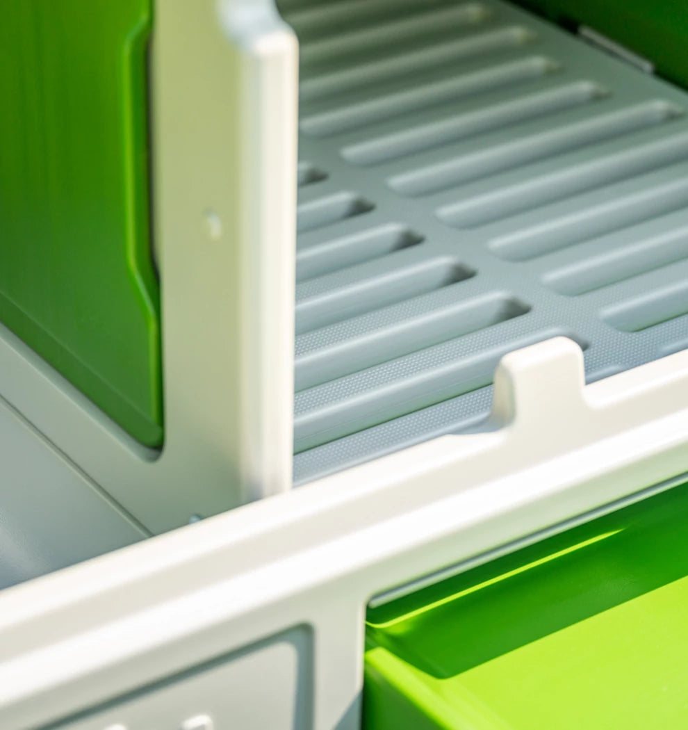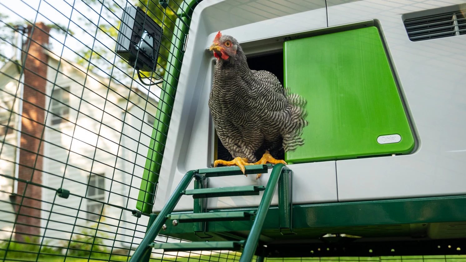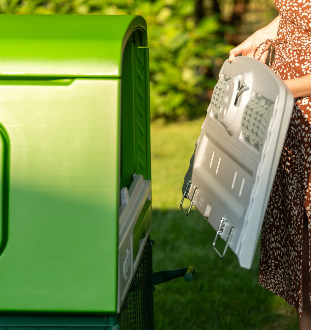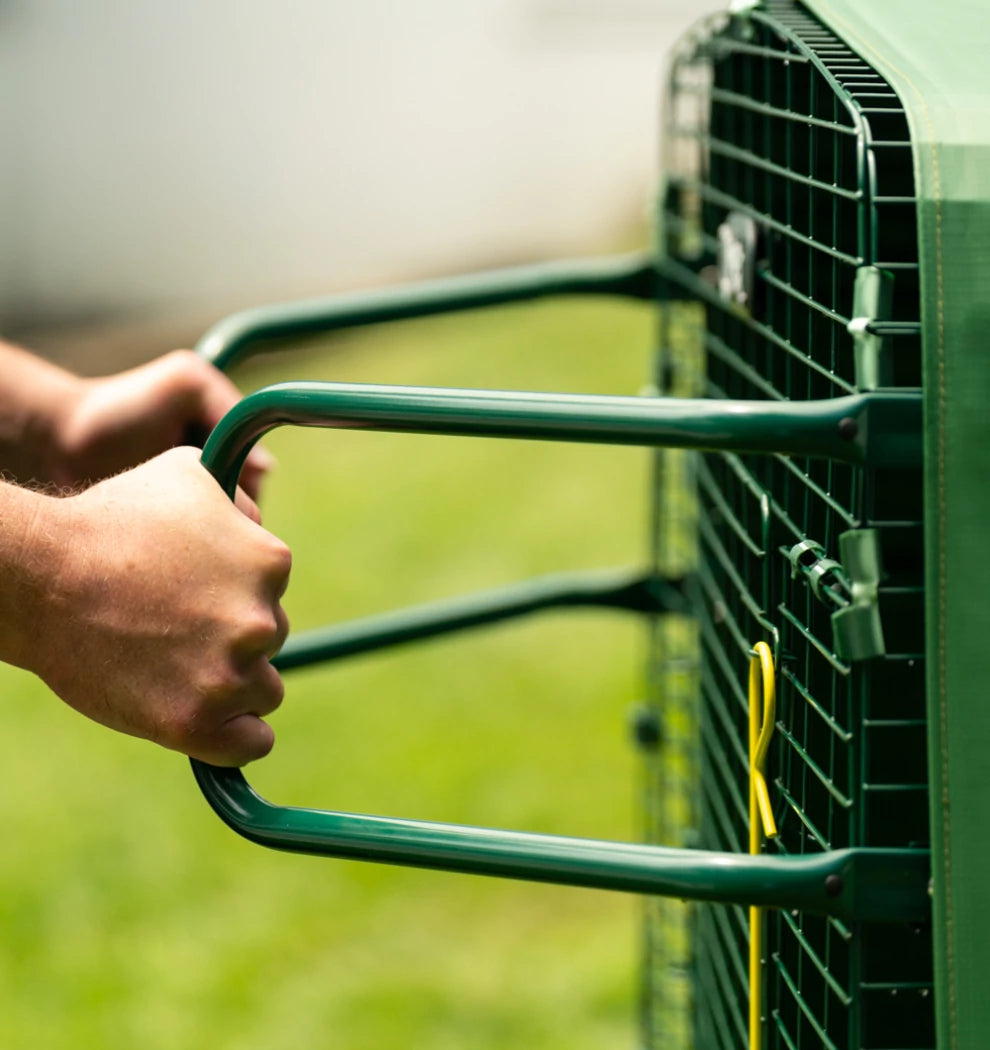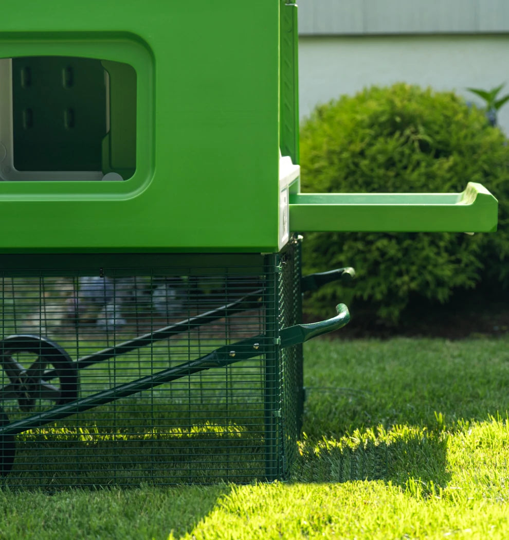 The run on your Eglu Cube is made from extremely strong steel welded wire. Unlike traditional "chicken wire", predators find it impossible to break the wire panels. The wire is coated to protect from rust and the green blends in nicely with your garden.